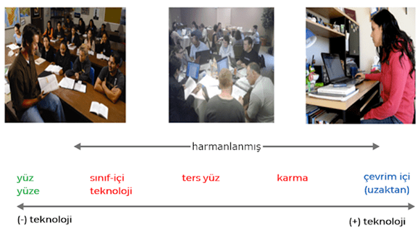Hem çevrim içi hem de yüz yüze öğretimin birleştirildiği derslerdir. Bu birleşim çeşitli biçimlerde olabilir: